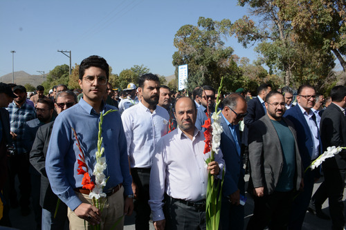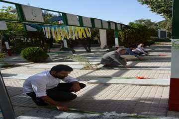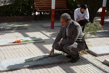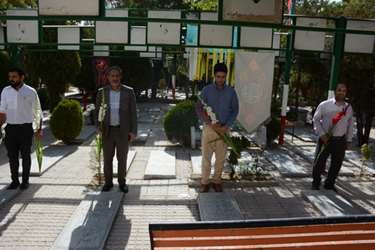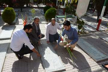 مهندس جعفری، سرپرست شرکت شهرکهای صنعتی استان مرکزی به همراه جمعی از کارکنان با دل‌هایی آکنده از احترام و افتخار، قبور مطهر شهدا را غبارروبی کرده و با گلاب ناب، فضای گلزار را معطر ساختند.